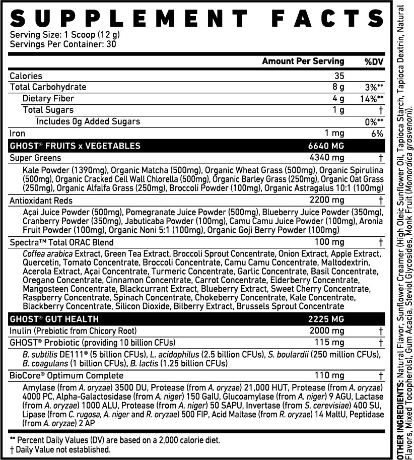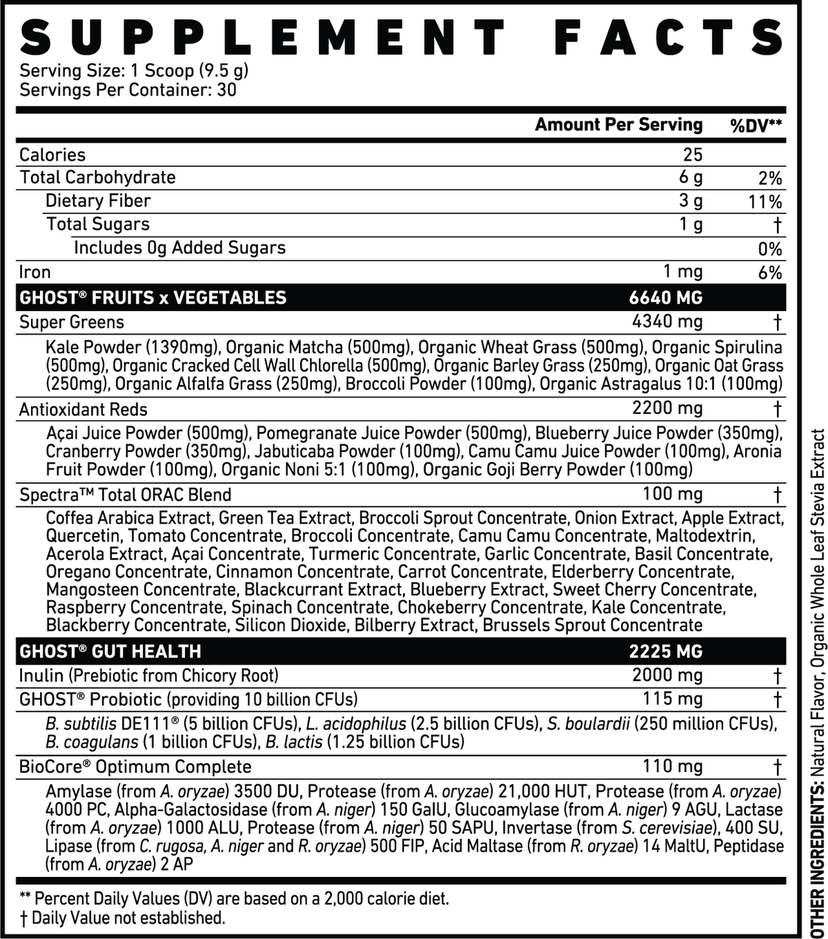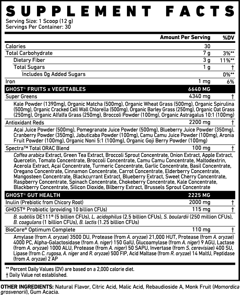 Mix each scoop (1 serving) of GHOST® GREENS with 250-300 ml of water or beverage of choice. Vary amount of liquid to taste. Consume daily.