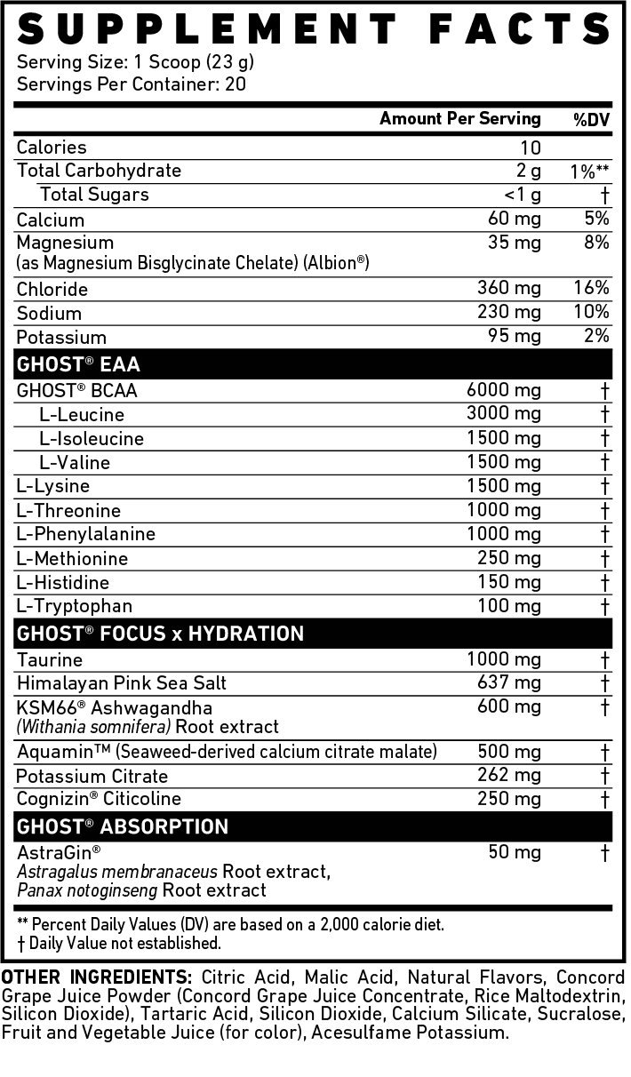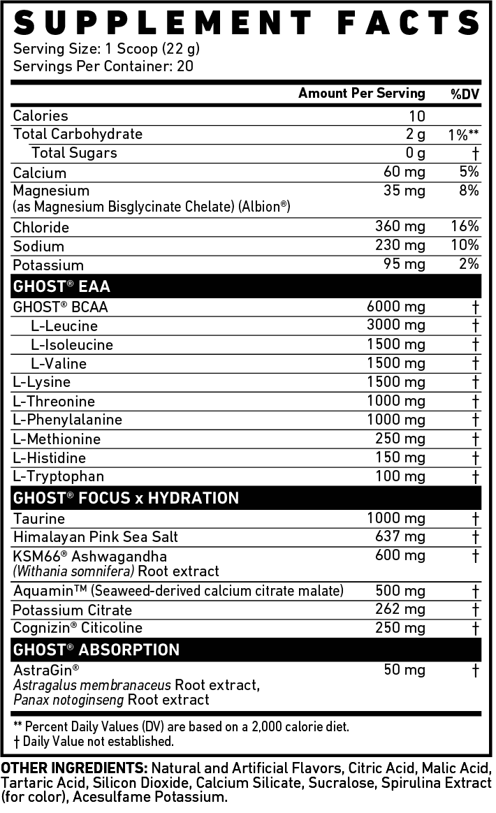 Mix each scoop (serving) of GHOST® INTRA with 450-500 ml of water or beverage of choice. Vary amount of liquid to taste. Consume during or after exercise on training days or throughout the day as desired.