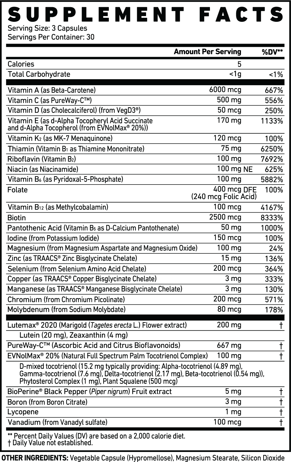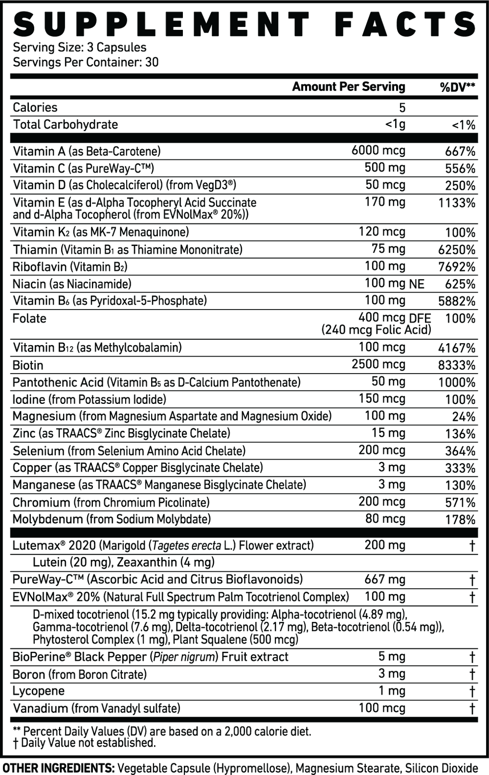 GHOST® MULTI is a food supplement capsule with vitamins, minerals, and herbal extracts.
